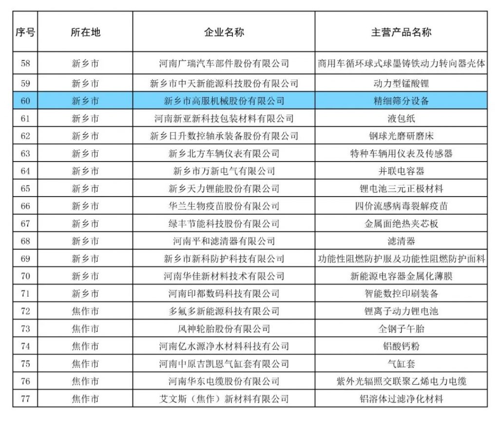 近日,河南省工業(yè)和信息化廳組織開展了2024年河南省制造業(yè)單項冠軍企業(yè)遴選工作,目前已完成相關(guān)評審。高服篩機的“精細篩分設(shè)備”上榜了“制造業(yè)單項冠軍產(chǎn)品”目錄。這一榮譽的獲得,不僅彰顯了高服篩機在技術(shù)創(chuàng)新、產(chǎn)品質(zhì)量及市場競爭力等方面的卓越成就,也進一步鞏固了其在振動篩分設(shè)備制造領(lǐng)域的領(lǐng)軍地位。