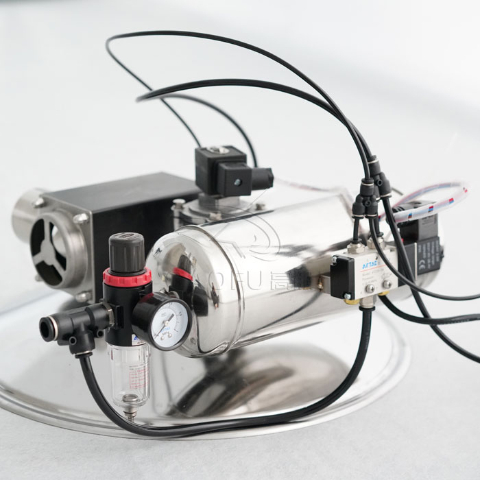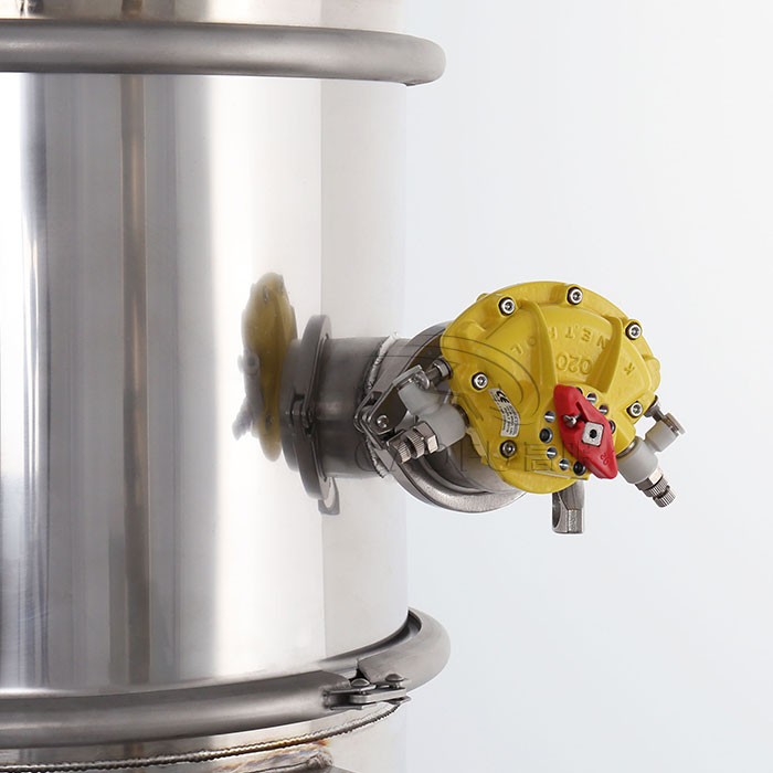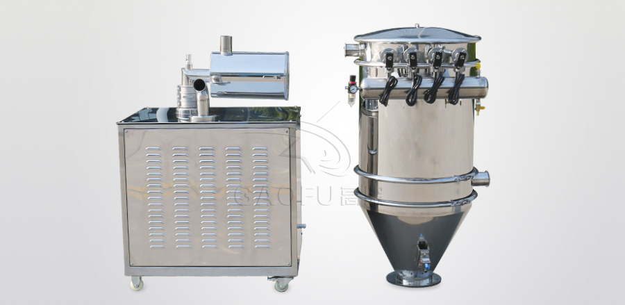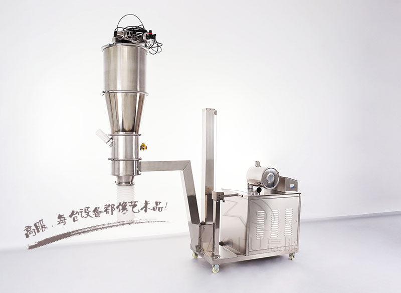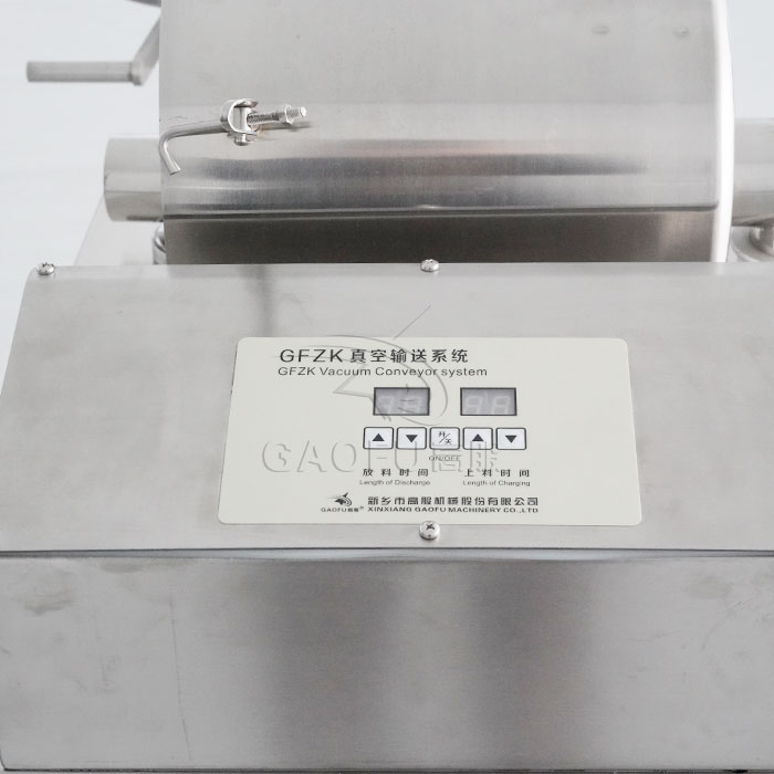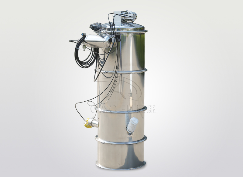 GFZK 真空上料機(jī)中裝有壓縮空氣反吹裝置,每次放料時(shí),壓縮空氣脈沖反吹過濾器,把吸附于過濾器表面的粉末打落下來,使吸料能正常運(yùn)行。