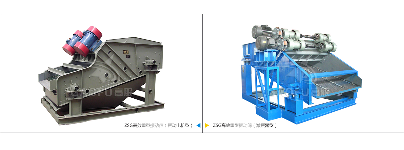 ZSG型重型振動篩的基本工作原理為,篩機起動后,呈對稱布置的兩臺相同型號和規(guī)格的振動電機或激振器作同步反向運轉(zhuǎn),其產(chǎn)生的激振力通過傳振體—電機或激振器底座傳遞到整個振動體—篩箱上,使篩箱帶動篩面作周期性振動,從而使篩面上的物料隨篩箱一同作定向跳躍式運動,其間,小于篩面孔徑的物料通過篩孔落到下層,成為篩下物,大于篩面孔徑的物料經(jīng)連續(xù)跳躍運動后從排料口排出,完成篩分作業(yè)。