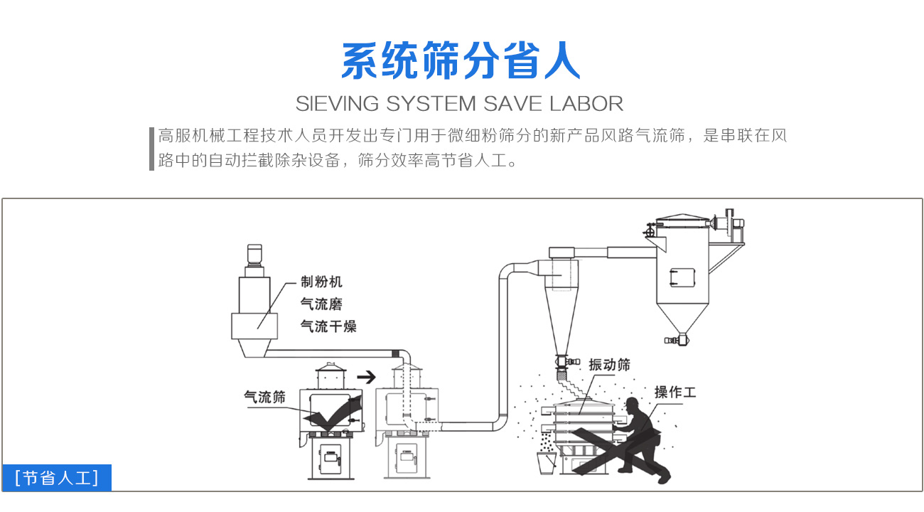 高服機(jī)械是微細(xì)粉篩分機(jī)械專業(yè)性生產(chǎn)廠家,隨著市場經(jīng)濟(jì)的發(fā)展,產(chǎn)品精度的提高;對(duì)各種粉狀物料的細(xì)度、精度要求越來越高。微細(xì)粉物料易粘附、粒徑小、質(zhì)輕、易懸浮等特點(diǎn);國內(nèi)現(xiàn)有篩機(jī)利用其重力勢能或施加激振力、彈力、沖力作業(yè)很難篩分,易引起粉塵飛揚(yáng),更難達(dá)到技術(shù)指標(biāo)。我公司針對(duì)這一情況,工程技術(shù)人員經(jīng)過多年來研究試制,開發(fā)出專門用于微細(xì)粉篩分的新產(chǎn)品——?dú)饬骱Y分機(jī)。