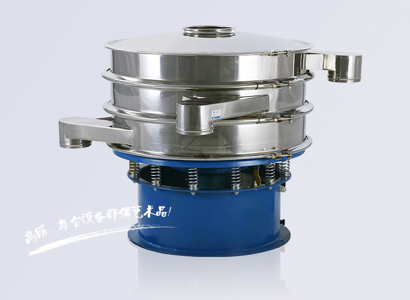 旋振篩由立式振動電機作激振器,振動電機上、下兩端安裝有偏心重錘,將振動電機的旋轉(zhuǎn)運動轉(zhuǎn)變?yōu)樗?、垂直、傾斜的三次元運動,再把這個運動傳遞給篩面。調(diào)節(jié)上、下兩端的相位角,可以改變物料在篩面上的運動軌跡。