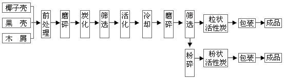 設備應用說明:椰殼/果殼/木炭—前處理---磨碎---炭化---活化---冷卻---磨碎---篩選—包裝---成品
